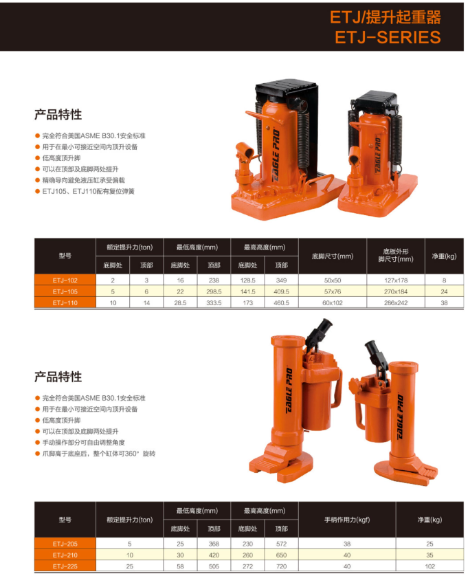 精確導(dǎo)向避免液壓缸承受偏載ETJ105、ETJ110配有復(fù)位彈簧